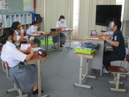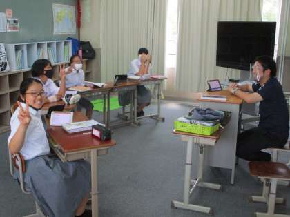 今日の予定は終わったのでしょう。先生が「校長先生に写真を撮ってもらったら?」と言って一瞬授業を止めました。