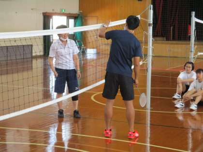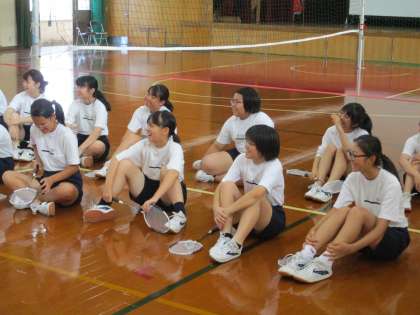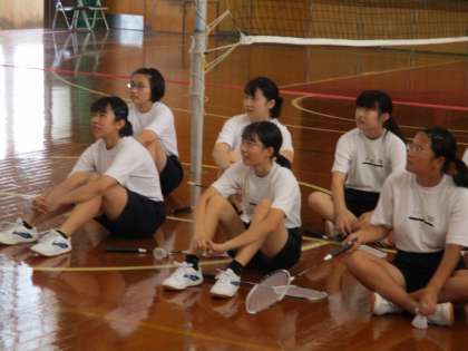 3・5組は陸上競技が終わったのでしょうか,男子はサッカー,女子はバドミントンに取り組んでいました。