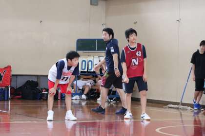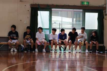 講堂では男子バスケットボール部が樫原中学校と九条中学校を招いて練習試合をしていました。