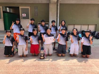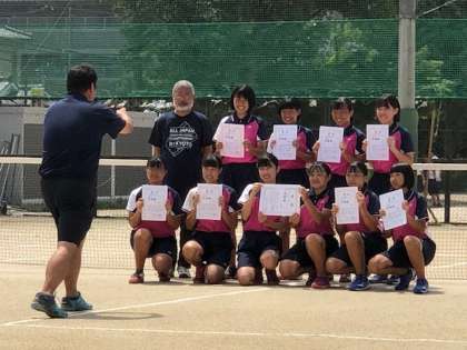 テニスのサマートーナメントに優勝した京都光華中学校と京都市立深草中学校の選手たちです。
