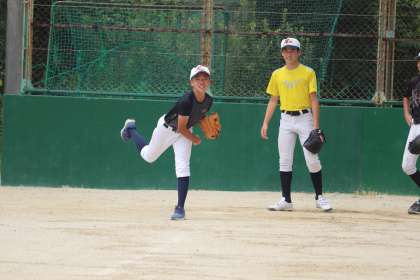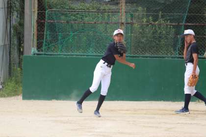 野球部もウォーミングアップの塁間チャッチボールです。これは役に立ちますね。
