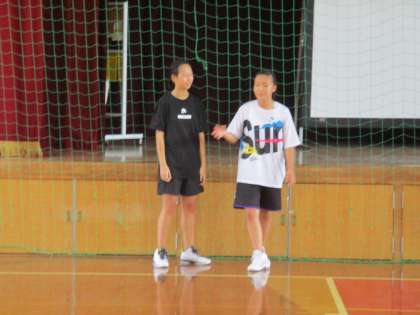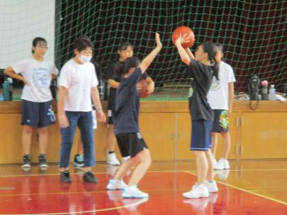 講堂では女子バスケットボール部が練習をしています。