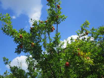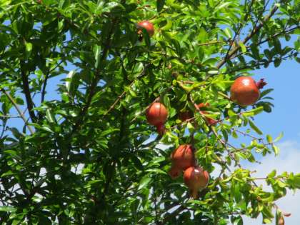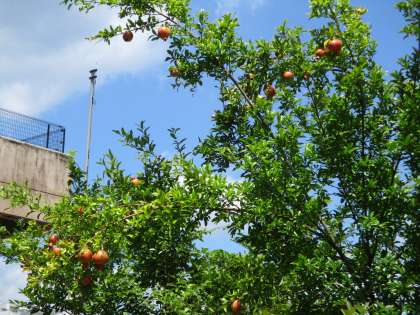ザクロの木と実です。さて,どこにあるでしょうか。