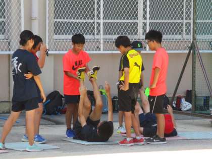 陸上部は,今はグランドの端の方を使っていますが,時間が来ればもっと広い範囲を使っての練習ができるはずです。