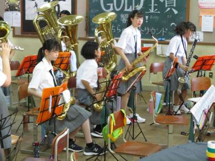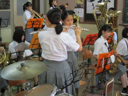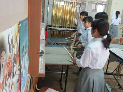 吹奏楽部です。まだこの時間帯はパート練習です。