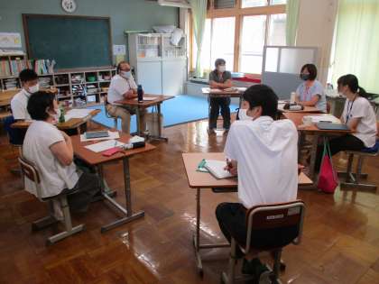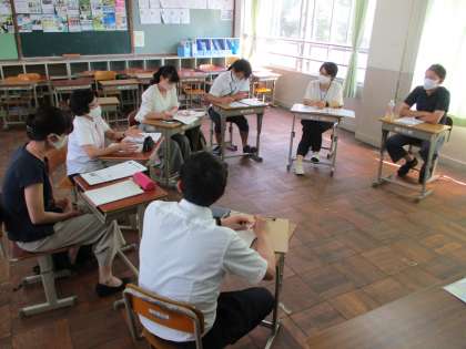 分散会は,中学校の教科ごとに行いました。小学校の先生には,専門の(得意な)教科の会に入ってもらっています。