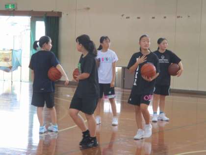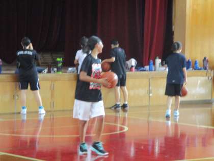 講堂では女子バスケットボール部が活動しています。
