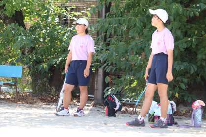 学校へ帰ってくると,テニス部が練習を行っていました。
