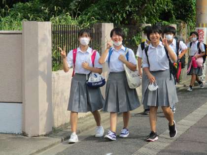 大きな声と笑顔,周りの人を幸せにする素敵な挨拶の秘訣です。