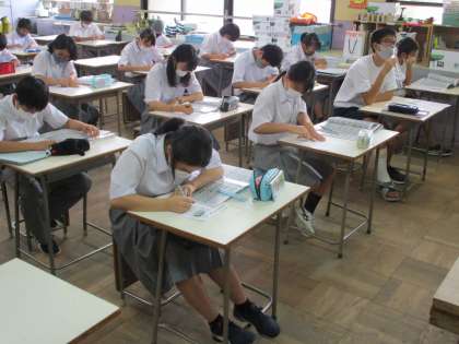 3組は美術です。レタリング,上手にできるようになりましたか。