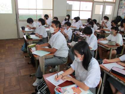 今日はやや発展問題で,3元1次方程式に取り組んでいました。みんな,一生懸命考えていましたよ。