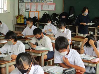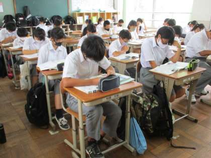 1組は社会です。熱心に取り組んでいました。