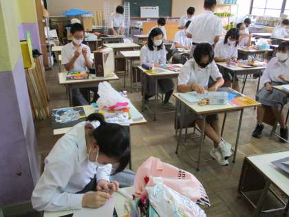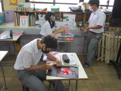 ピカソの抽象画をモデルにした作品も完成に近づいてきました。文化祭で展示されるのでしょうか。面白い作品がたくさんあります。1・2年生の皆さん,楽しみにしてください。