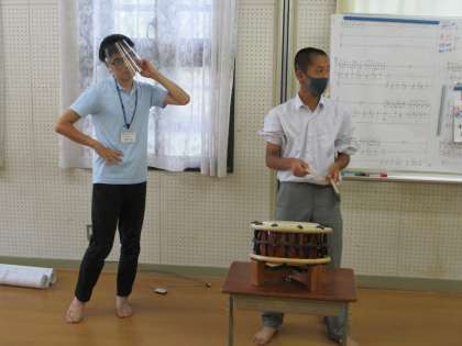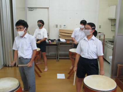 1・2・3年5組も,いよいよ今日から和太鼓の練習を始めました。