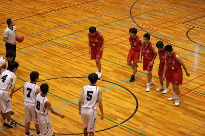 今日の12時,横大路体育館で男子バスケットボール部3年生の引退試合が行われました。春季大会も夏季大会も亡くなった3年生のために設けられた大会です。