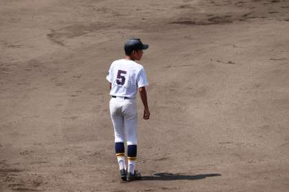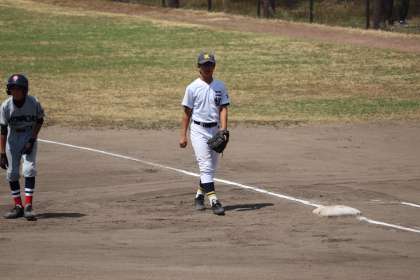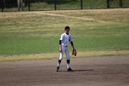 ファースト・天野君,セカンド・林君,サード竹脇君(2年生)。