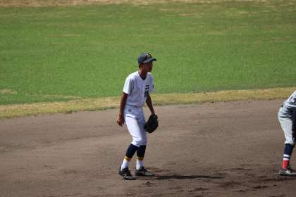 ショート・高田君(2年生),レフト・西村君(2年生),センター・川江君。