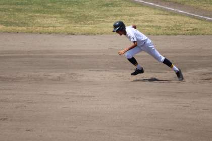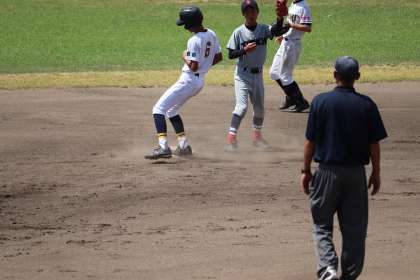 先頭バッターはファーボールで出塁,すかさず盗塁で2塁ベースへ。