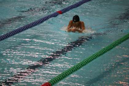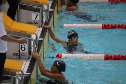 3年生の西脇君,100m平泳ぎで惜しくも4着です。