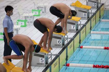 位田君は100mと200mのバタフライに出場です。