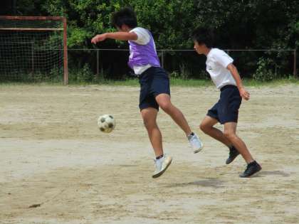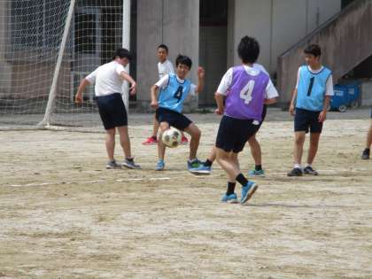 3時間目が1・2組です。男子はサッカーです。暑い中ですが,頑張っていました。