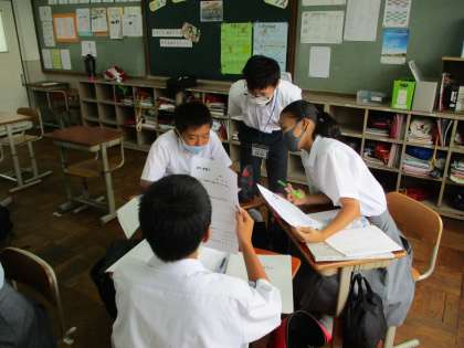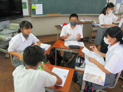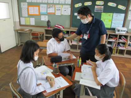 今日の1組の担当は2組担任の先生です。学生ボランティアさんも一緒に学んでいます。