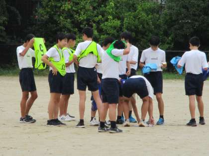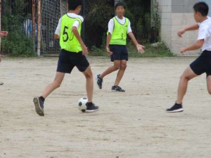 1・2組男子,雨中のサッカーです。