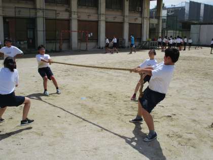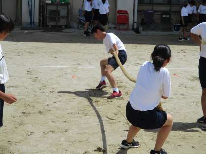 こつぃの綱引きは例年と随分異なります。ソーシャルディスタンスをとり,少人数での競技になります。