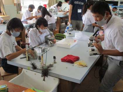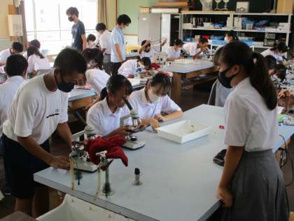 1組は理科,顕微鏡を使った観察です。何を見ていたのかな?