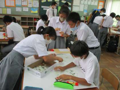 毎年1年生はこういうことに取り組みます。コツコツとした作業をやり終えて完成した作品は楽しみです。