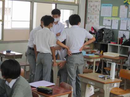 3−1で研究授業が行われるので,早目に教室へ向かいました。いつものとり,リラックスした様子で生徒たちが休憩時間を楽しんでいました。