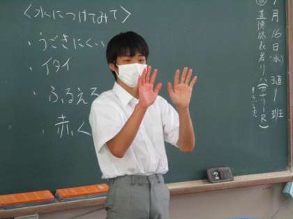 手を入れていた方の手がすくに真っ赤です。ここで,「どういうことが起こっているか」考えさせたら面白かったと思うのですが…
