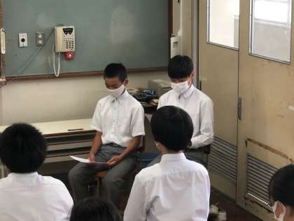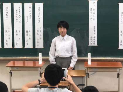 今日の5時間目,「今,私が思うこと」の全校大会を行いました。