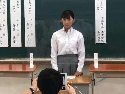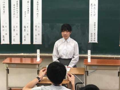 さすがに各学級の予選会を通過してきた人たちだけに,どの発表も甲乙つけがたく,その内容を聴いていても納得したり感動したりと,感心させられっぱなしでした。
