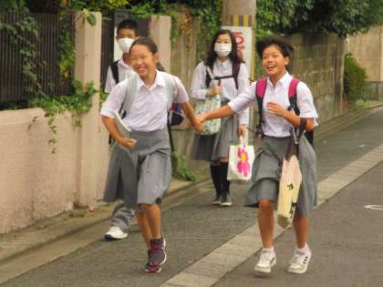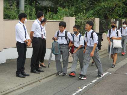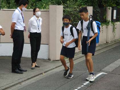 生徒たちはちゃんと傘を持って登校してきます。
