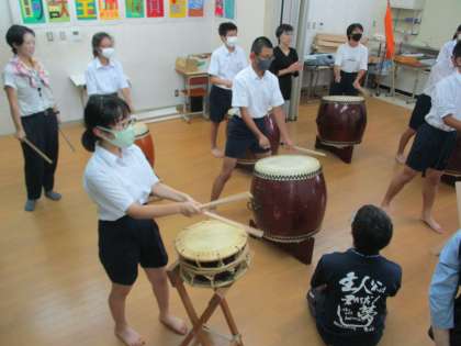 今日も5組のみんなは和太鼓の練習です。