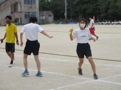 ここからは,リレーの出場者がバトンパスの練習をしている場面の紹介です。