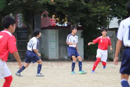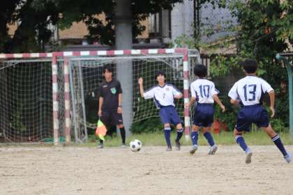 11時50分,西京極中学校でサッカー予選リーグの最終戦を行いました。