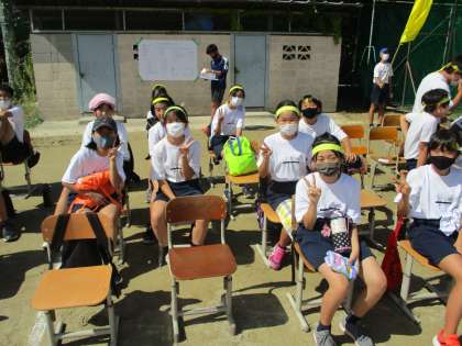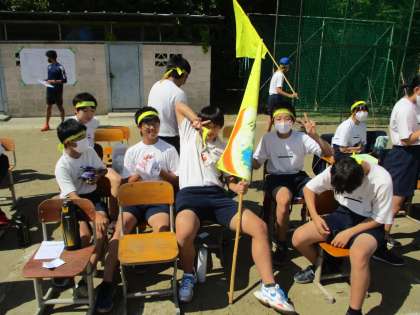 生徒席の様子です。借り物のそばの生徒席に待機していました。