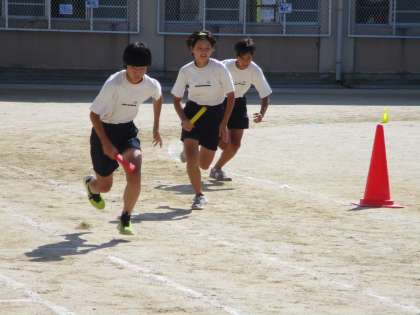 3年の部のスターターに,2人の男子に交じって女子が居ました。