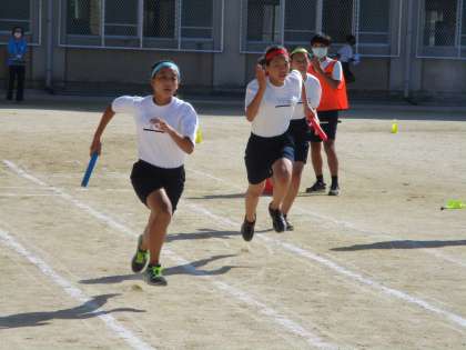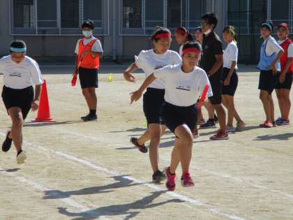 種目はクラス対抗リレー,先ずは1年女子の部からです。