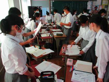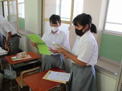 グループごとに話合い活動を行っています。結構真剣に意見交換をしていました。