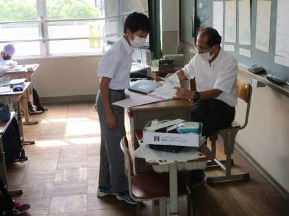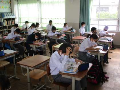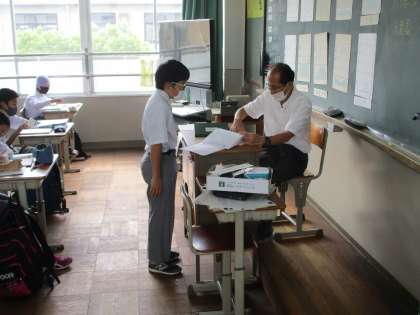 3組は社会,個人を呼び出して,先生が何やら指導をしています。