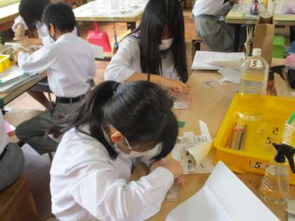 1組は技術,種の植付けをしているようでした。この後,水やりなど,一人ひとりが世話をするのでしょうか。そうであってほしいと思います。