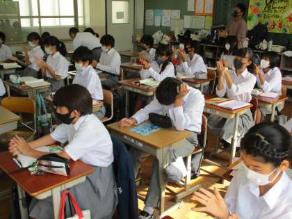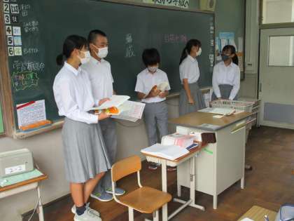 グループごとに「秋テスト」の出題問題を予想させています。なるほど,そうすれば,今回の範囲のどこが大事か,みんなで共有することが出来そうです。