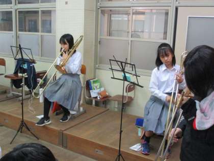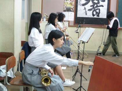 3年生が引退してしまったので人数が少なく,明日は,同じような状況にある中京中学校と合同で演奏するようです。