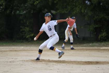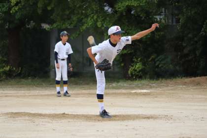 2回を0点に抑えたところでピッチャー交替,サードの竹脇君がピッチャーとなりました。彼はいつでも準備ができています。