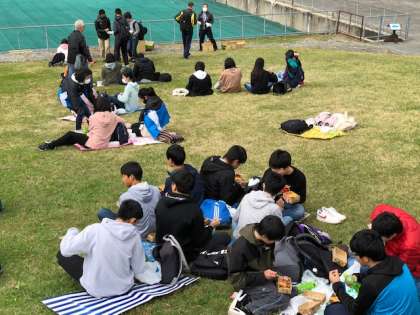 その後は,ジャンプ台前で昼食をいただきます。