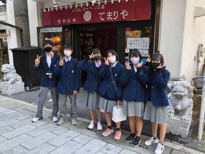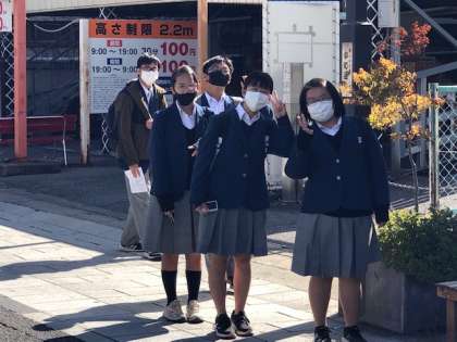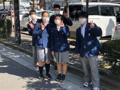 街中を歩いていると,二条中学校生によく出会うそうです。