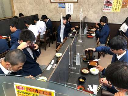 今回の修学旅行での最後の食事です。